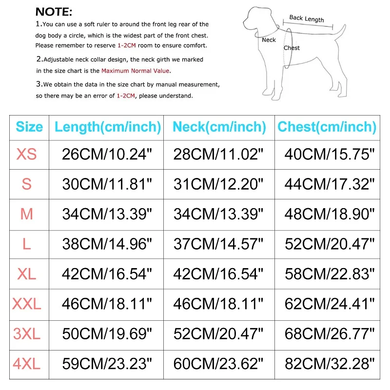 Size——–Length(cm/inch)——–Neck(cm/inch)——–Chest(cm/inch)